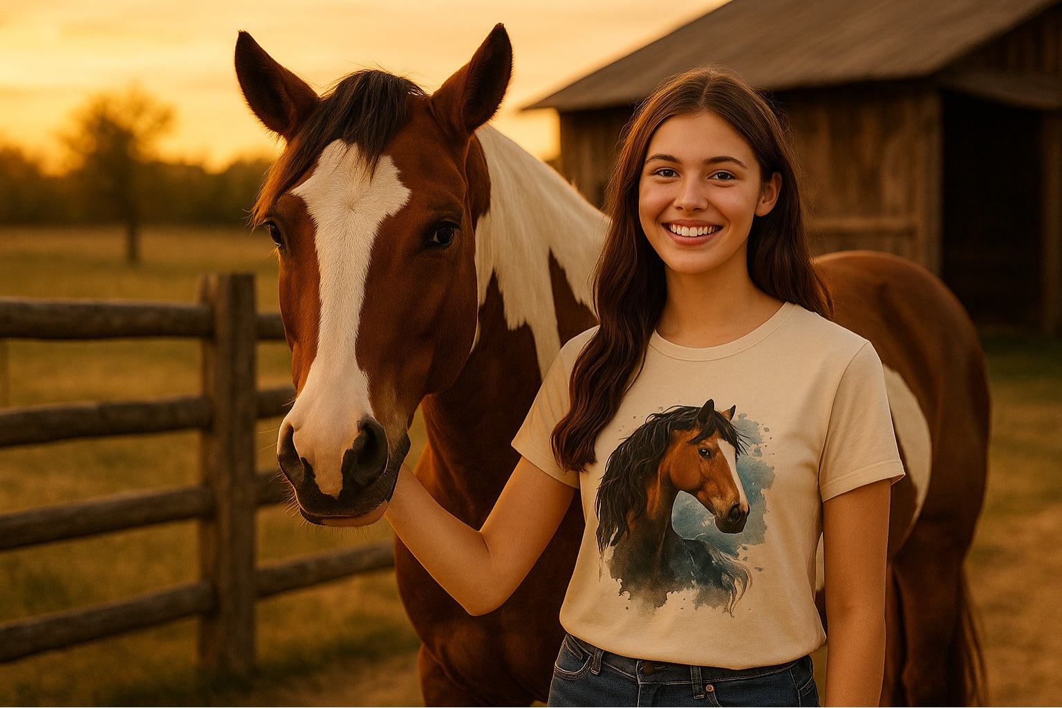Paint Horse Aquarell | Mädchen T-Shirt | 100 % Baumwolle